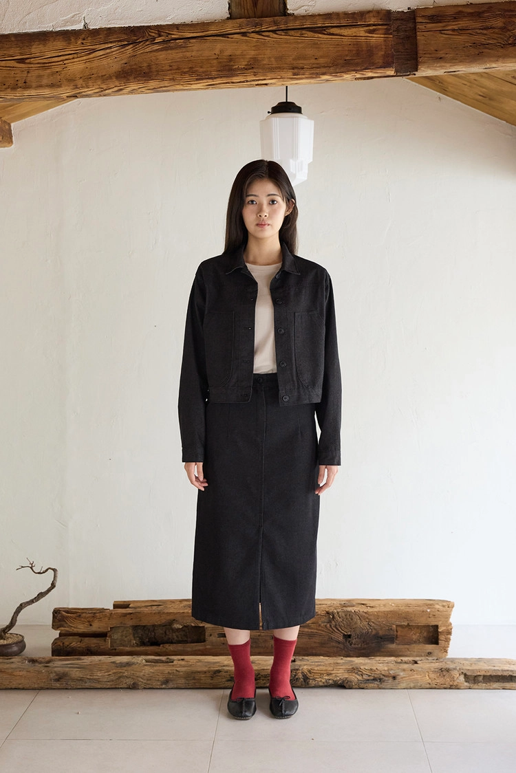 동일한 소재로 제작된 슬릿스커트와 셋업으로 연출 가능 합니다