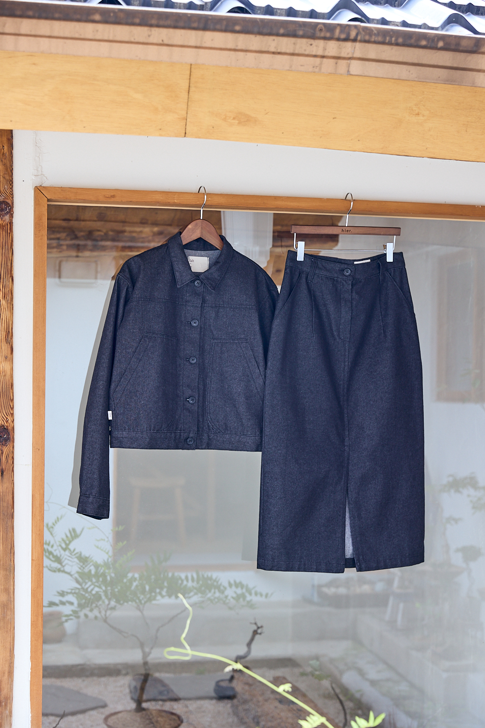 활용도 높은 실루엣의 데님 트리커 자켓입니다