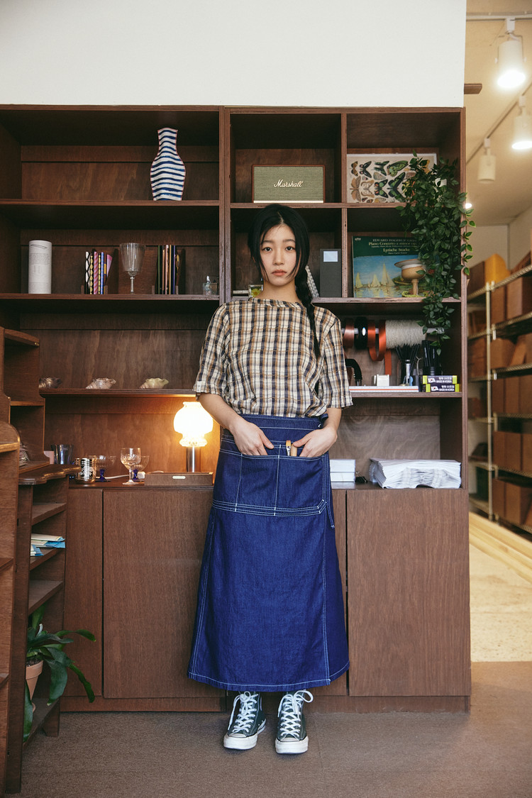 데님소재의 랩스커트 입니다. 워싱&고착 과정을 거쳐 이염 우려를 줄여주었습니다.