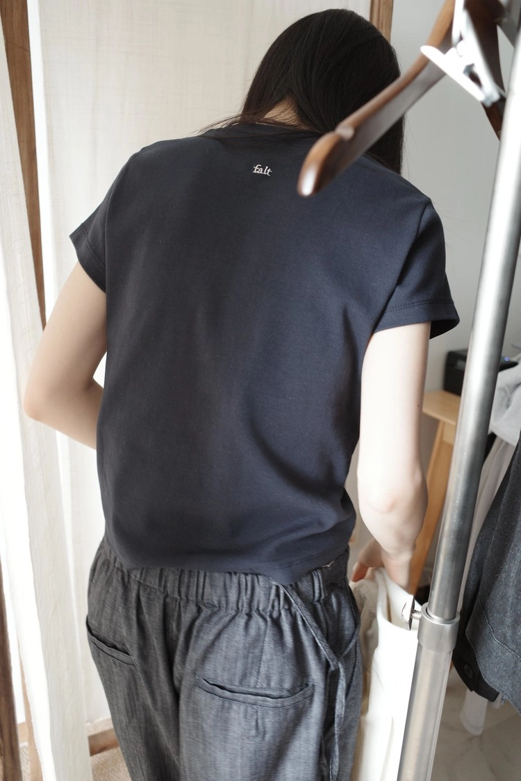 뒷목 아래에 더해진 falt 로고 자수가 은은한 포인트를 더해줍니다