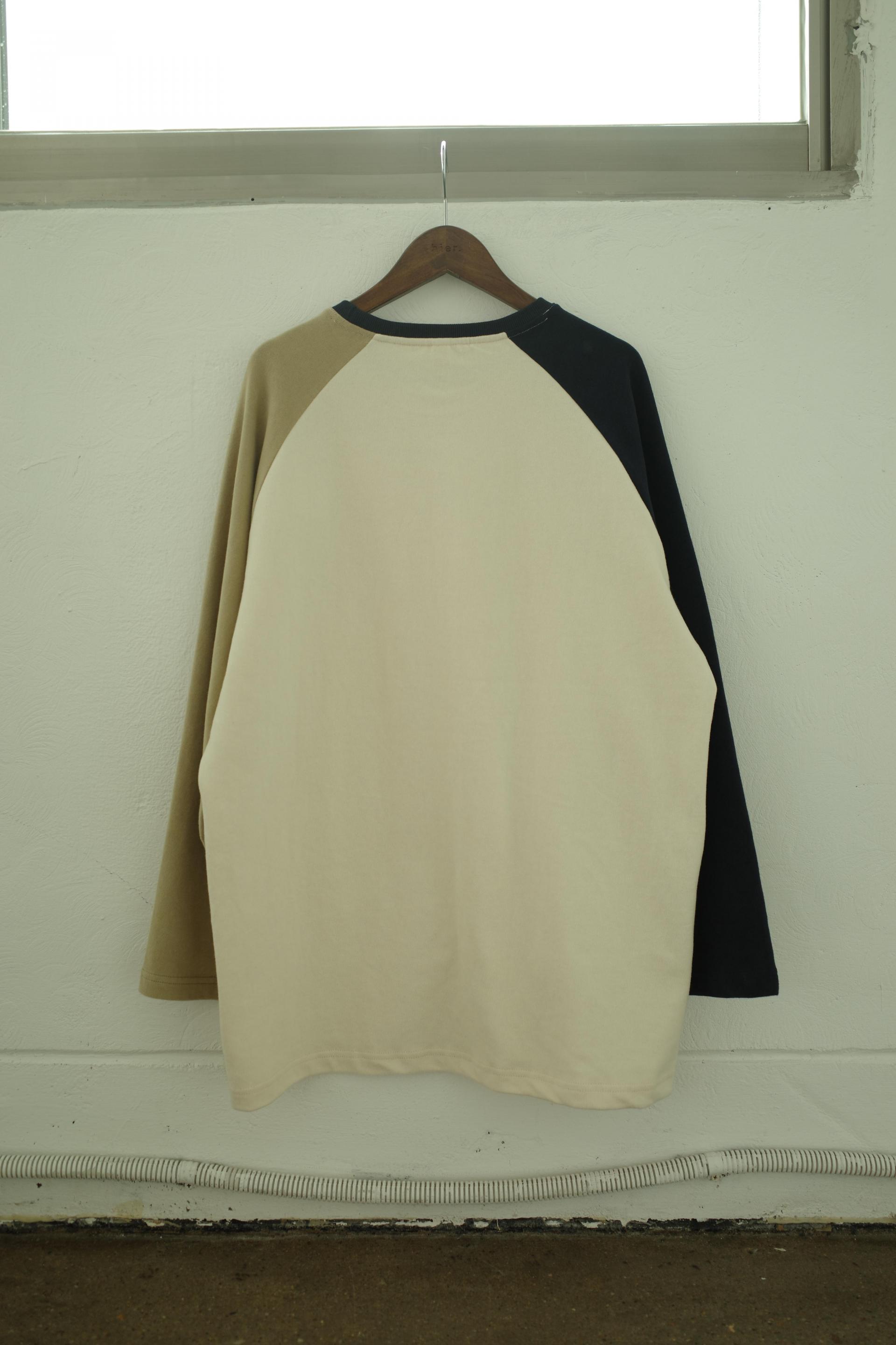 포근한 촉감의 피치드 코튼 소재로 제작된 오버핏 래글런 티셔츠입니다.