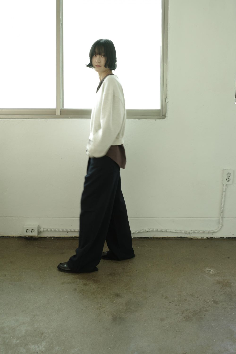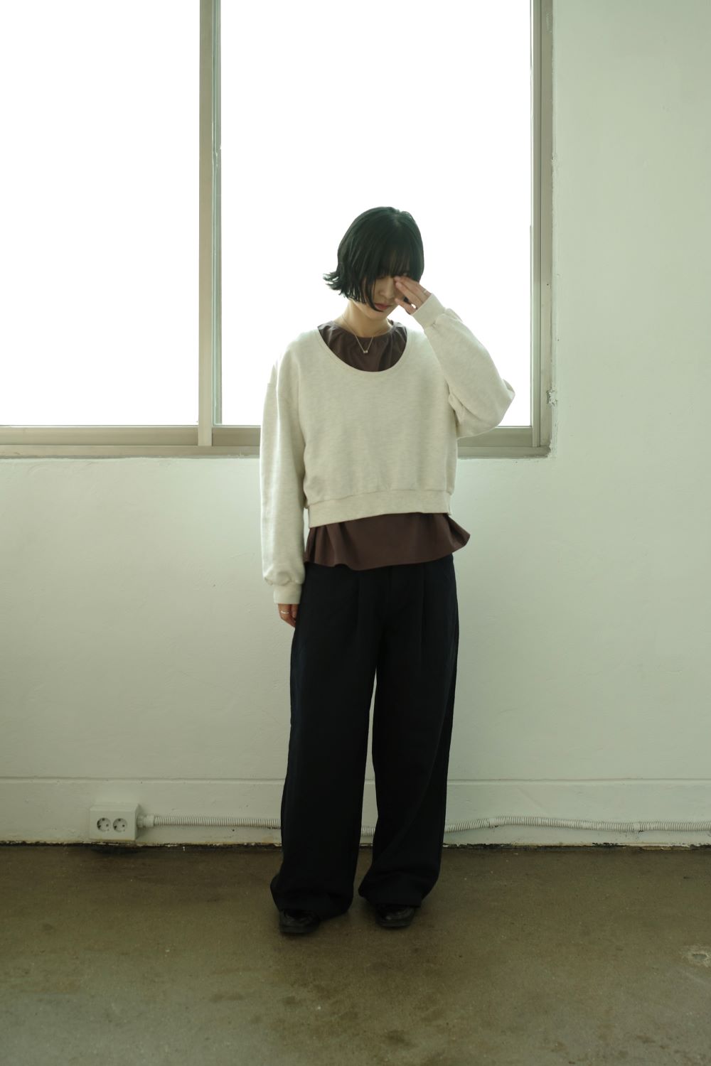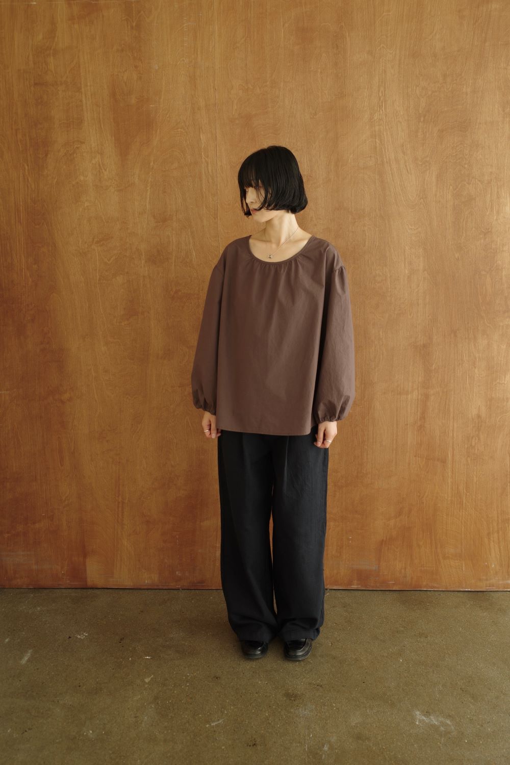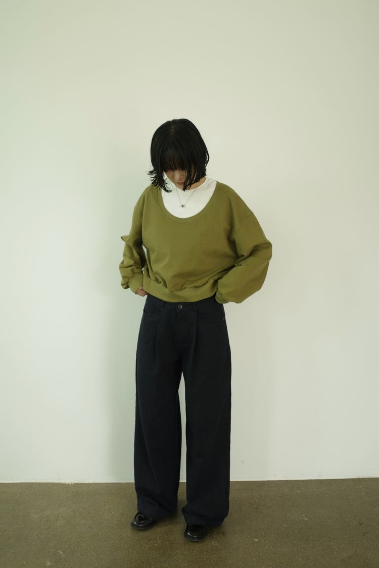 자연스럽게 흐르는 실루엣이 특징인 코튼 팬츠입니다