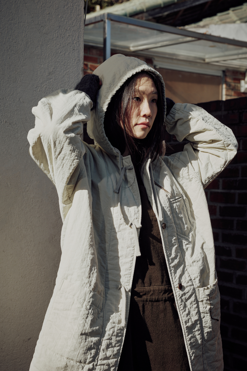 제원단 후드와 버튼·매듭을 조합한 클로징은 착용감을 안정적으로 잡아주면서 디자인 포인트가 됩니다.
