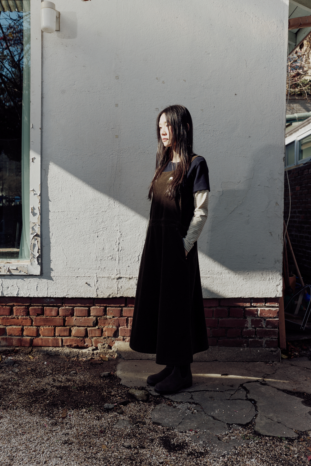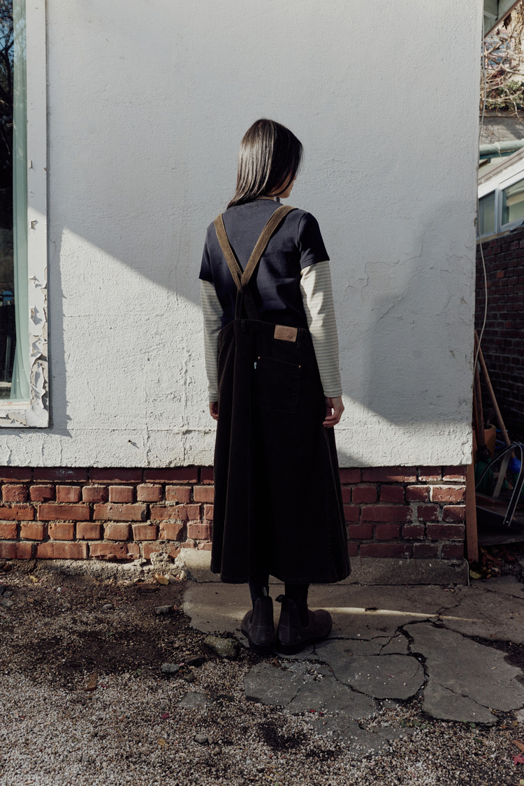 부드러운 촉감과 깊은 골의 코듀로이로 제작한 오버롤 원피스입니다.