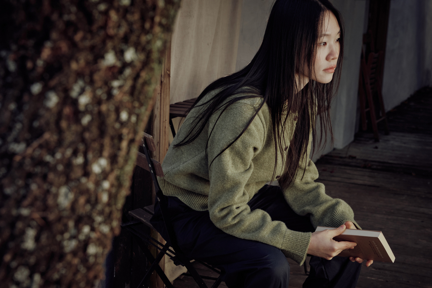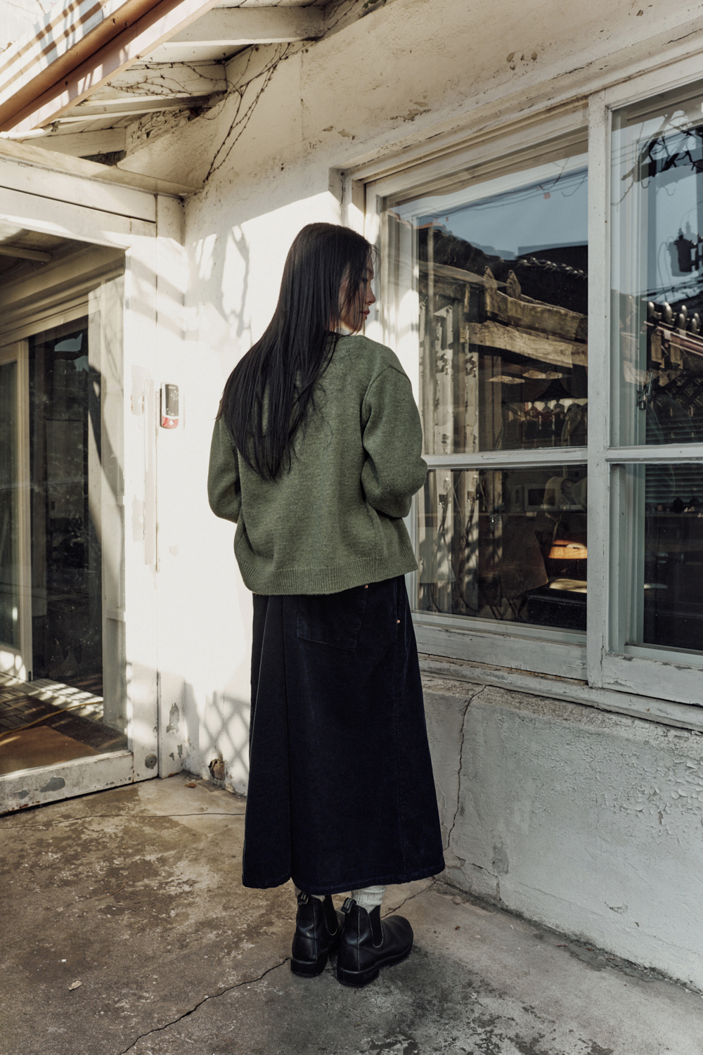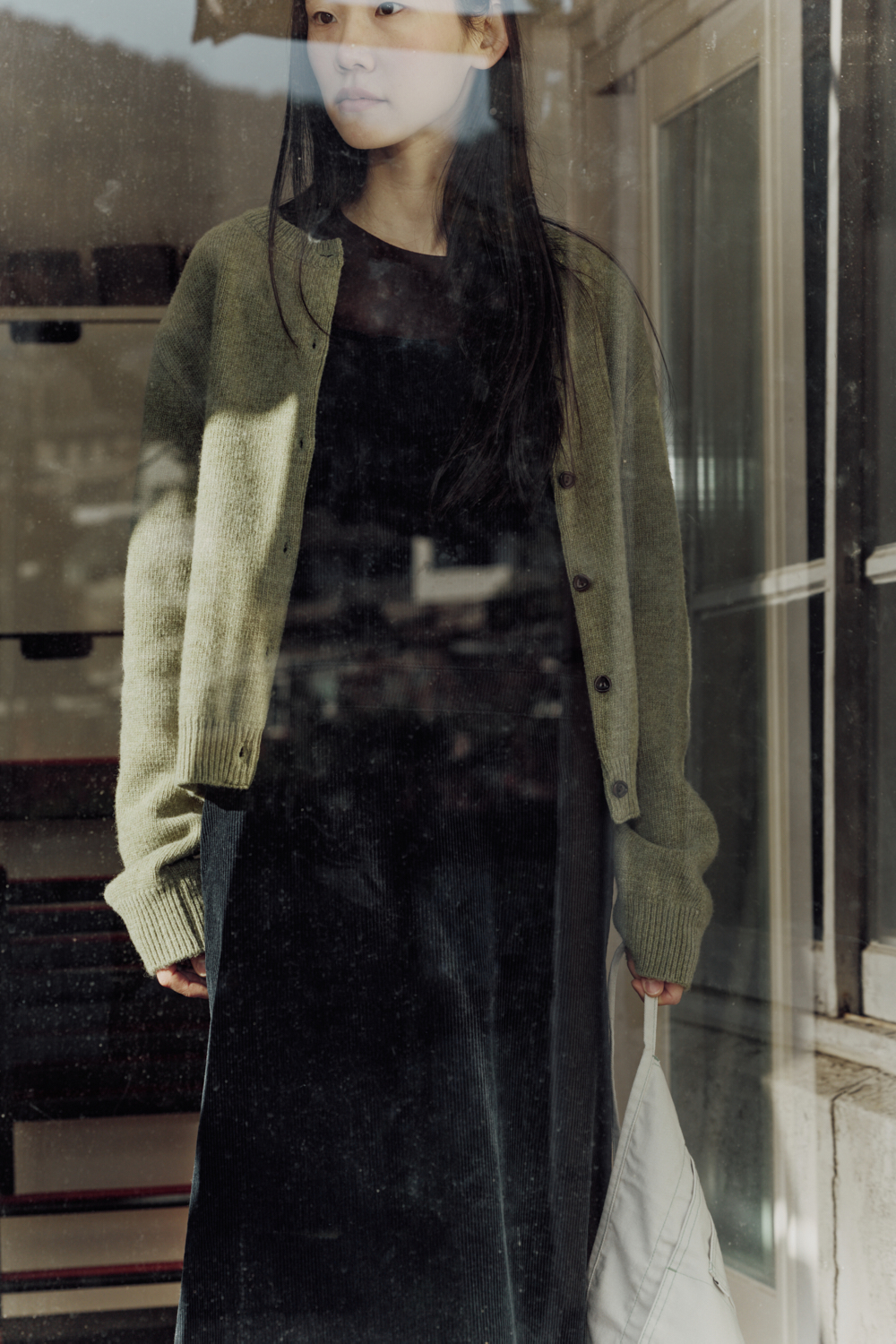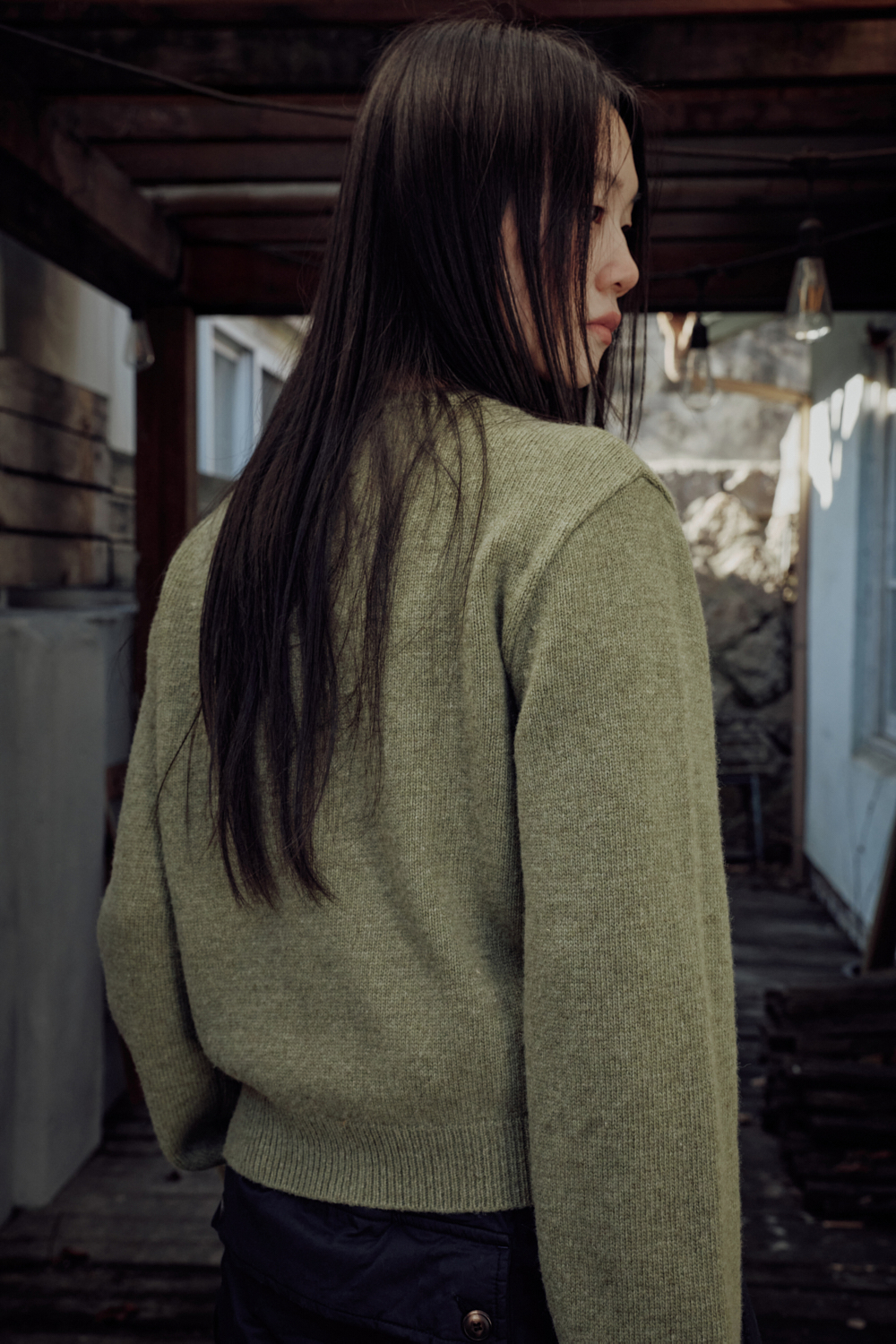 그린넛 컬러는 말린 잎사귀 같은 톤다운 그린 계열입니다초록빛이 은은하게 스며 있어 어떤 옷과도 자연스럽게 어울리고 빛에 따라 실내에서는 차분하게, 자연광에서는 더 따뜻하게 표현됩니다.