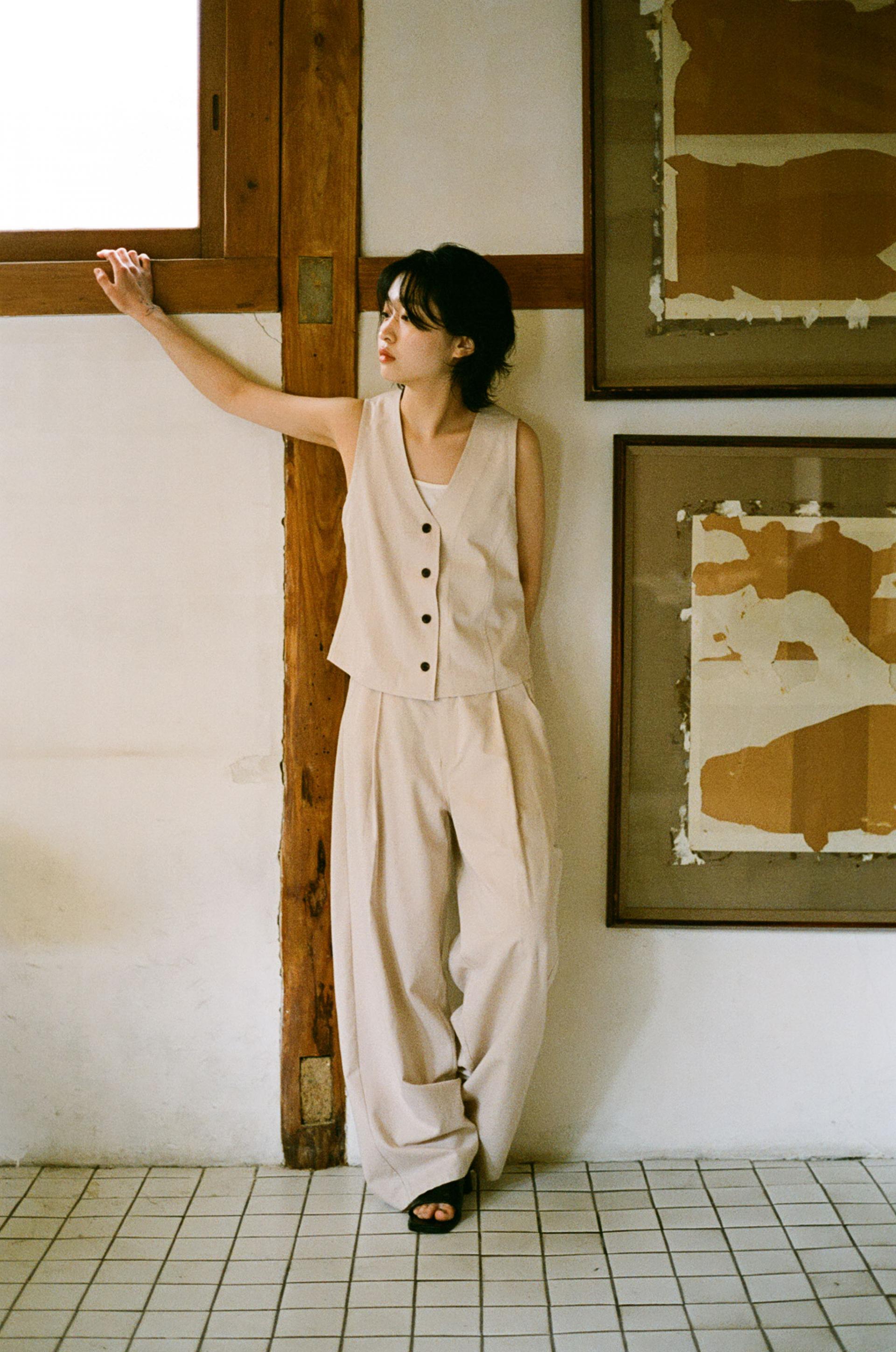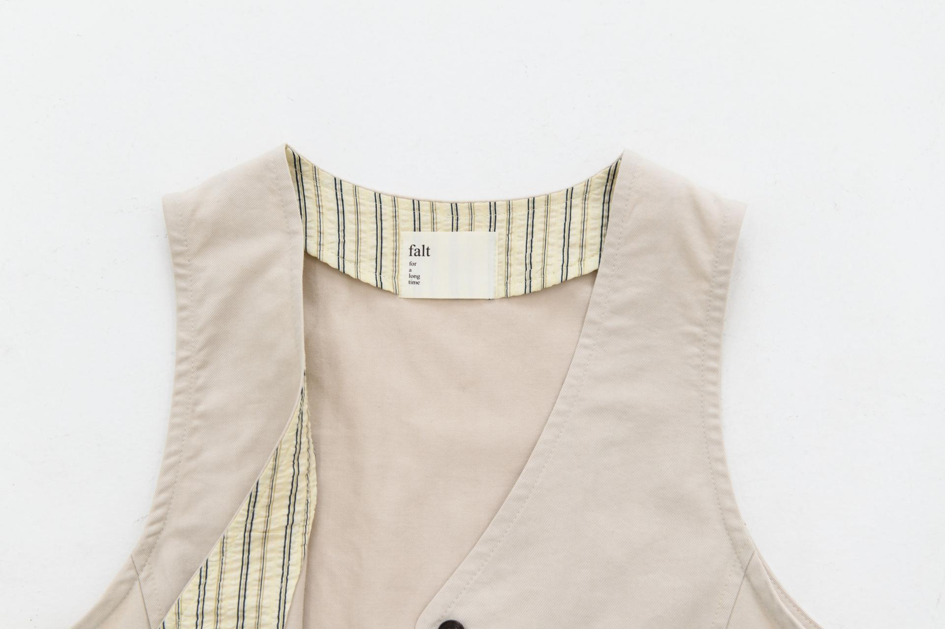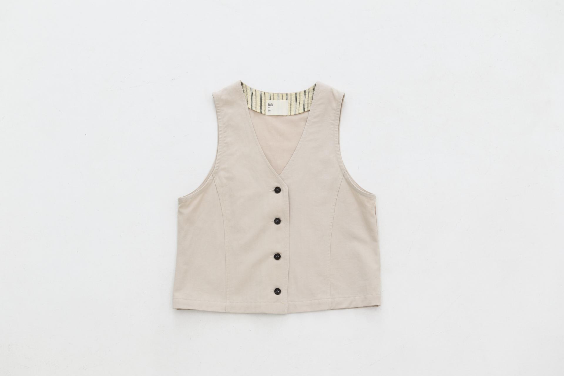 미니멀한 핏의 브이넥 베스트 입니다. 배색이 되는 안감으로 포인트를 더해주었습니다. 단독으로 착용시 무심한듯 멋스럽게 연출되며, 다양한 계절에 포인트 아이템으로 레이어드하여 활용할 수 있습니다.
