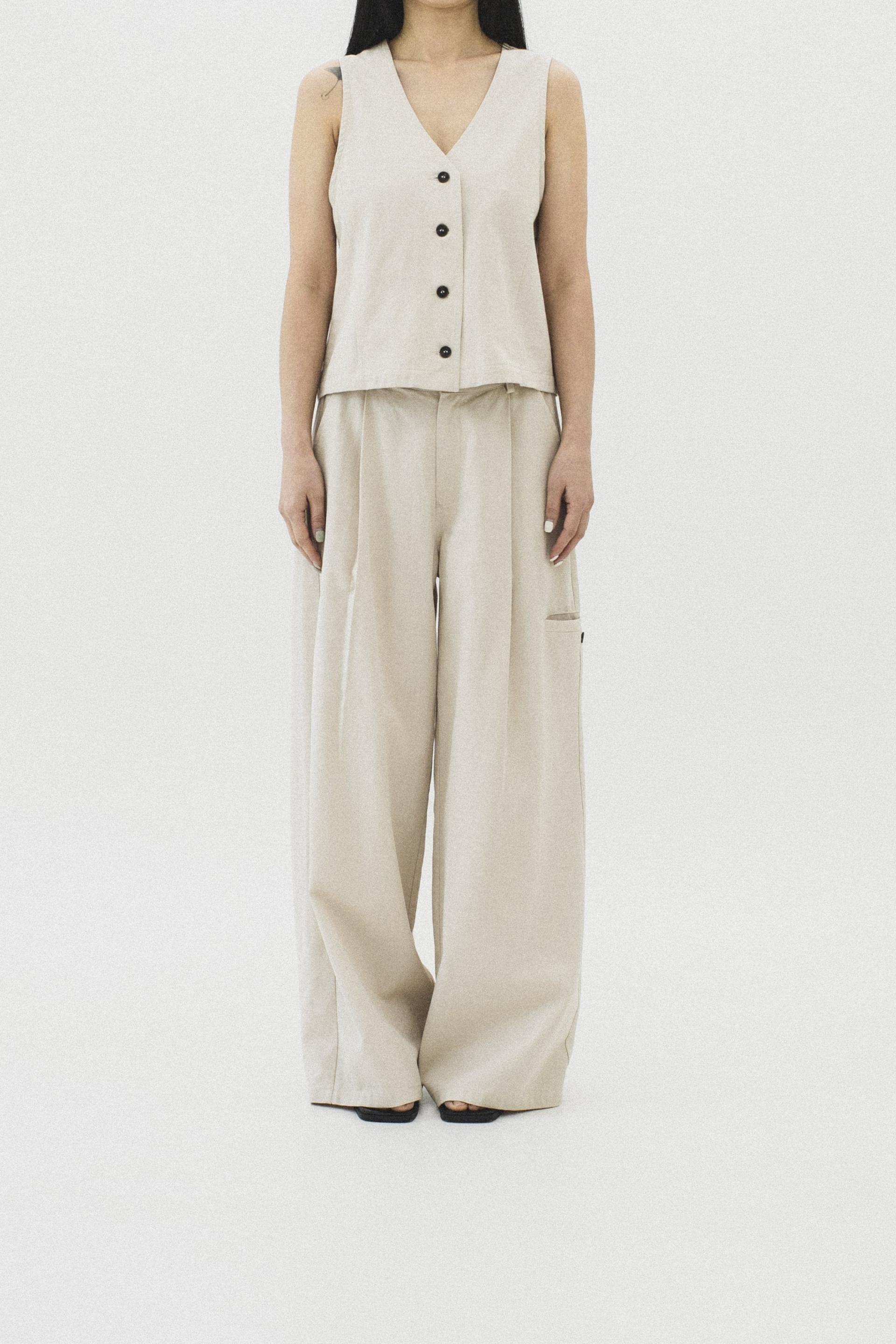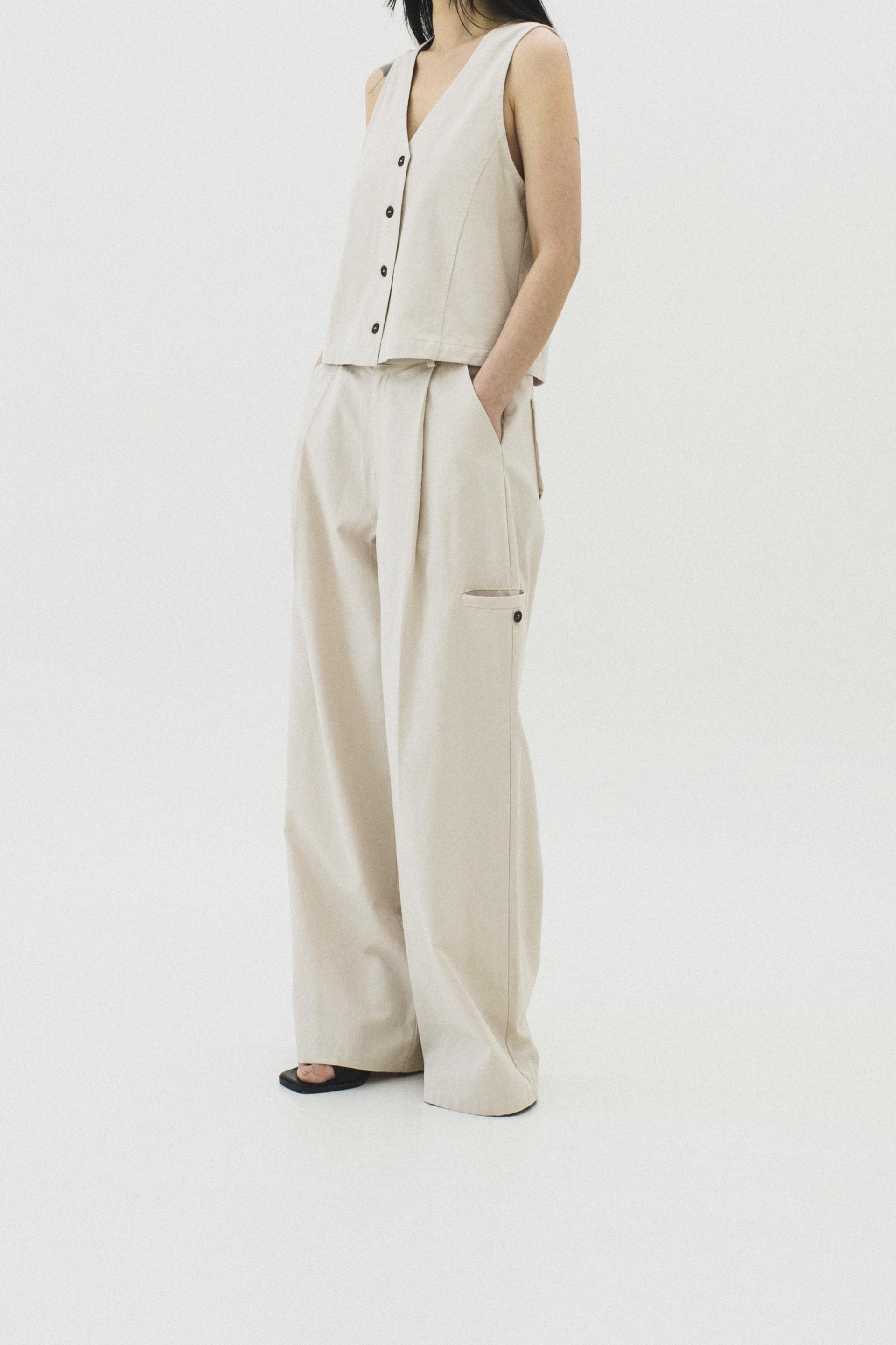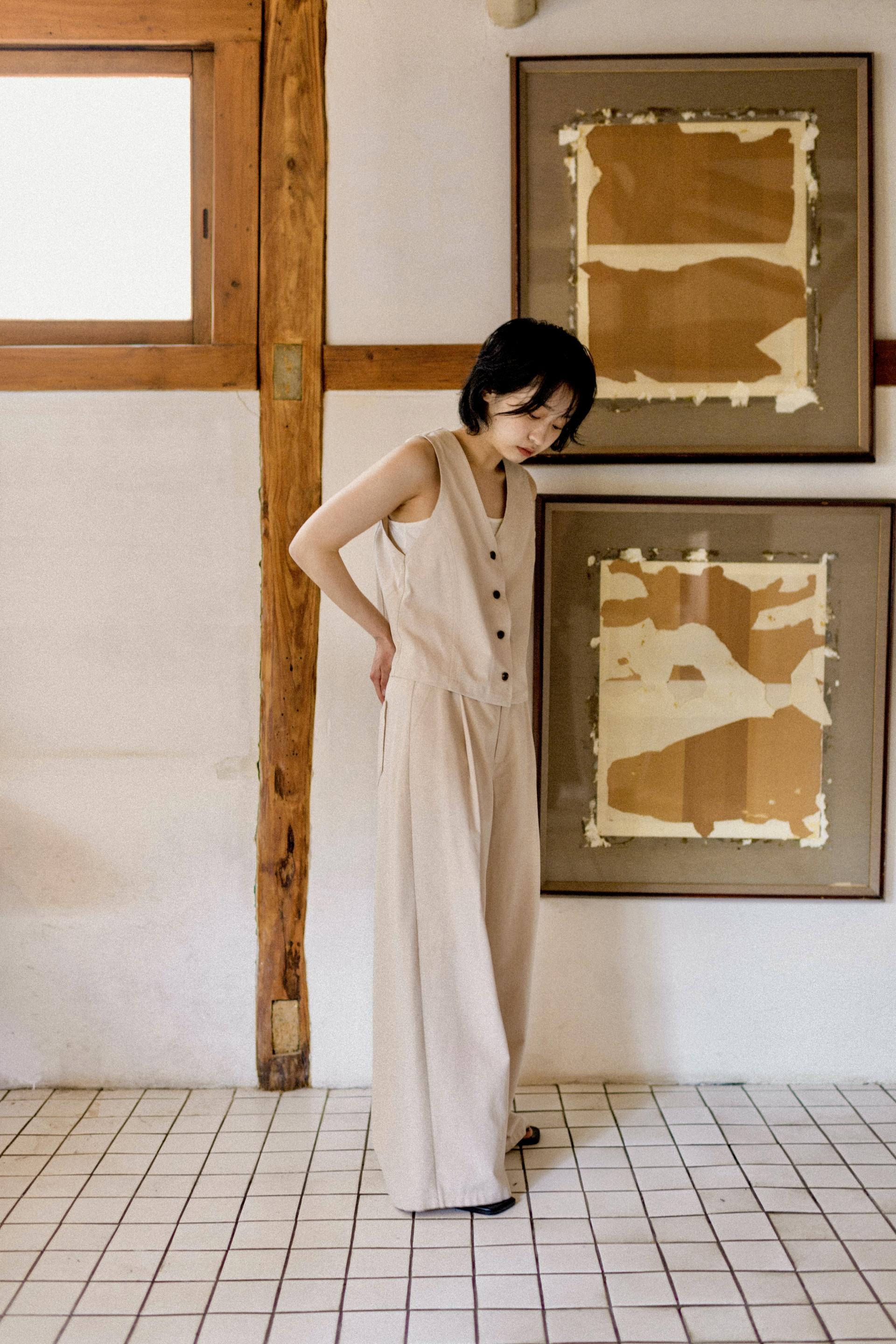 미니멀한 핏의 브이넥 베스트 입니다. 배색이 되는 안감으로 포인트를 더해주었습니다. 단독으로 착용시 무심한듯 멋스럽게 연출되며, 다양한 계절에 포인트 아이템으로 레이어드하여 활용할 수 있습니다.